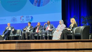 Le maire Atrokpo a partagé les initiatives locales de Cotonou, mettant en lumière des solutions concrètes pour renforcer la résilience face aux impacts climatiques. Pour Luc Atrokpo, le moment est propice pour que les villes africaines intègre dans les politiques publiques locales les enjeux aux dérèglements climatiques. Cette année, Météo Bénin prévoit une saison pluvieuse forte et longue. Cette information a permis à la ville de Cotonou et toutes els communes susceptibles de subir des inondations d’anticiper sur les travaux de curage des caniveaux et l’actualisation des plans de contingence. Pour le maire de Cotonou, il est également important de renforcer le dialogue et la coopération entre les acteurs non-étatiques concernés par les enjeux d’adaptation, notamment la société civile qui accompagne les communes dans la mise en œuvre des plans de gestion des inondations et de sauvegarde de la population. C’est pourquoi, il est important de mobiliser la société civile dans l’élaboration et la mise en œuvre des politiques d’adaptation.