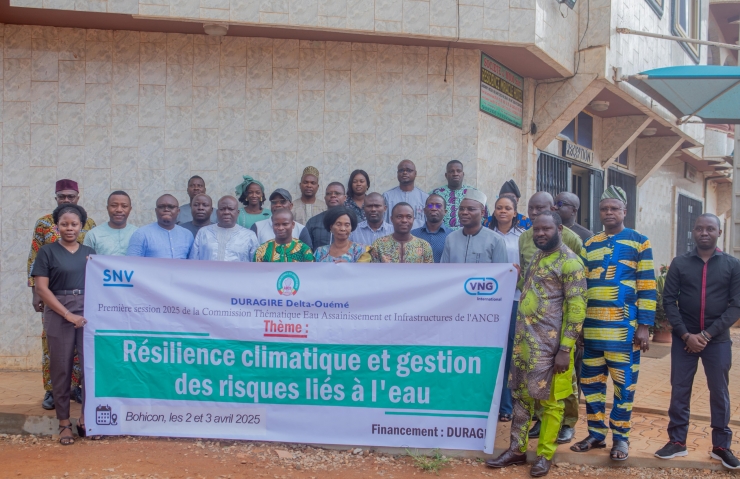 Sous le thème de la « Résilience climatique et gestion des risques liés à l’eau », la Commission Eau, Assainissement et Infrastructures (EAI) de l’Association Nationale des Communes du Bénin (ANCB) a tenu sa première session de l’année à Bohicon les 2 et 3 avril 2025. Cette rencontre a été rendue possible grâce au soutien financier du programme DURAGIRE, fruit d’un consortium entre l’ANCB, VNG International et SNV, et bénéficiant de l’appui de l’Ambassade du Royaume des Pays-Bas. Elle a permis aux maires, Adjoints au maire, cadres techniques communaux et représentants des ministères sectoriels de poser les bases d’une mutualisation des efforts et réalités des communes pouvant aboutir à des approches concertées de gestion intégrée des ressources en eau.