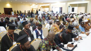 Avant l’ouverture des travaux, le pasteur Michel Alokpo, secrétaire général et porte-parole du Cadre de concertation des confessions religieuses (CCCR), par ailleurs président du comité d’organisation du séminaire, a présenté les différentes délégations. Sont représentés les cultes endogènes, la communauté musulmane – y compris la branche Ahmadiyya – ainsi que l’ensemble des fédérations évangéliques telles que la FEMEB, le CEPEB, les Assemblées de Dieu et l’Église Pentecôte de la Foi. L’Église catholique, les groupes orthodoxes, les Églises du christianisme céleste et les Chérubins Séraphins ont également répondu présents, témoignant de la forte implication des confessions religieuses dans la préservation de la paix.