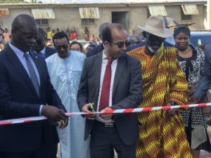 Après avoir transmis les salutations du Président de la Commission, Son Excellence Monsieur Abdoulaye DIOP aux populations d’Abobo Té massivement sorties pour vivre l’événement en direct, le Représentant communautaire a rappelé que ce joyau est le fruit d’un travail de synergie entre la Commission et le CCT avant de féliciter l’équipe qui a conduit les travaux, ce qui a permis de rendre possible la deuxième tranche du financement. Il a invité le Maroc a étendre cette expérience à d’autres collectivités territoriales de l’UEMOA. En effet, le Fonds africain d’appui à la coopération décentralisée internationale des collectivités territoriales, abondé par le Maroc, finance 90% des ressources nécessaires à la réalisation de ce projet avec un partenariat entre Bengurir et le CCT-UEMOA, au profit d’Abobo Té dont la municipalité (Abobo) a contribué pour 10%. Gustave DIASSO a terminé son intervention en invitant les bénéficiaires à faire très bon usage de ce projet.