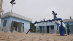 - stockage et distribution : le système comprend un château d’eau de 200 m³ et prévoit 20 bornes-fontaines ;