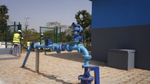 Ce SAEPmV, d’une envergure remarquable, comprend un réseau de distribution d’un linéaire total de 86 km, un château d’eau d’une capacité de 150 m³ avec une hauteur sous cuve de 15 mètres, vingt-cinq (25) bornes-fontaines, deux (02) têtes de forage ainsi qu’une station de pompage et de traitement.