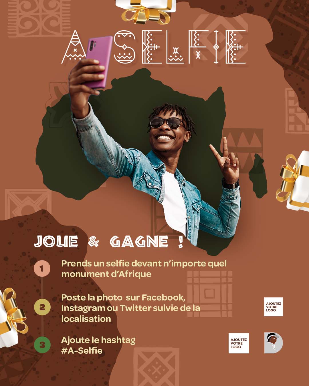 La grande campagne Africa Selfie qui à la base consiste à révéler la splendeur des monuments d’Afrique et des histoires héroïques des héros d’Afrique qui s’y cachent amènera les internautes à poster des photos faites devant ces monuments sur les médias sociaux avec un Hashtag du nom du monument et celui de la marque/produits/services auxquels ces internautes sont abonnés.
