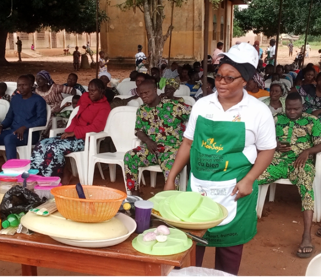 Le projet « Cuisines Mobiles » se donne pour mission de former des femmes entrepreneures des neuf (9) Communes du Département du Zou sur les bienfaits de la consommation locale et d’une alimentation saine. En favorisant l’amélioration significative de leur chiffre d’affaires, « Cuisines Mobiles » offre un creuset pour une synergie (des acteurs) favorable au développement économique à la base. Deux objectifs guident ce nouveau concept: l’autonomie alimentaire et la promotion de l’économie locale par le renforcement des Très Petites Entreprises (TPE) spécialisées dans la transformation de produits locaux, telles que les chaînes de valeur inclusives dont le Soja.