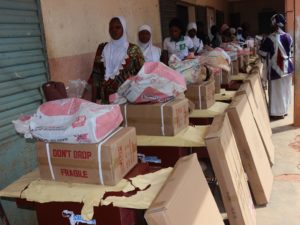 A Bembèrèkè, la dite cérémonie de remise des kits a eu lieu au Centre de Promotion Social (CPS) en présence du Deuxième Adjoint au Maire, Monsieur Ousmane SANNI GAMIA. Ces différents kits sont composés de machines à coudre plus accessoires et des rouleaux de popeline. En effet, ces filles avaient été précédemment formées en couture dans le cadre du projet « Autonomisation des Femmes et Dividende Démographique au Sahel », (3 filles par arrondissement). L’autorité toute émue a prodigué de sages conseils aux jeunes dames pour le soin du matériel et l’atteinte de l’objectif fixé.