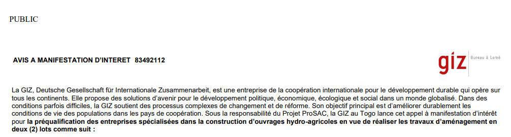 AVIS A MANIFESTATION D’INTERET 83492112 DE LA GIZ Avis et appels d'offresUnes By LeMondeLocal On Juil 3, 2025 0 842 Share 02 Juillet 2025 GIZ 83492112-Avis d'appel à manifestation d'intérêt Related Posts Voici pourquoi il faut voter UPR et Luc ATROKPO à Cotonou Cotonou sous Luc Sètondji ATROKPO, une plateforme de diplomatie… Voici le bilan de Luc Sètondji ATROKPO à Cotonou de 2020 à 2025 Partager : Cliquer pour partager sur X(ouvre dans une nouvelle fenêtre) X Cliquez pour partager sur Facebook(ouvre dans une nouvelle fenêtre) Facebook Similaire AMI GIZConstructionGIZ 0 842 Share