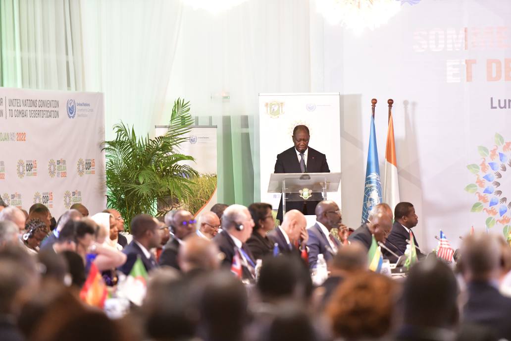Le chef d’Etat ivoirien Allassane Ouattara, dans son mot de bienvenu a présenté la situation très peu reluisante de l’état des terres : « « Notre sommet se tient dans un contexte d’urgence climatique qui impacte durement nos politiques de gestion des terres et exacerbe le phénomène de sécheresse. La dégradation des sols affecte 52% des terres agricoles et menace 2,6 milliards de personnes. 12 millions d’hectares de terres arables sont perdus. » a-t-il martelé.
