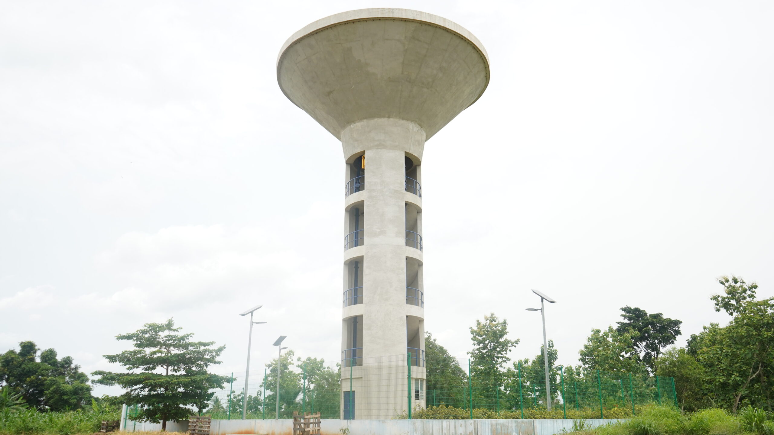 - stockage et distribution : le système comprend un château d’eau de 200 m³ et prévoit 20 bornes-fontaines ;