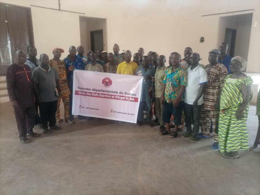 L’Union des chefs quartiers et villages du Zou (UCQVZ) sont en tournée dans les 9 communes du département. À Covè, le maire Auguste AÏHUNHIN a encouragé les chefs quartiers et villages ayant à leur tête le président Georges GNIMADI à poursuivre cette noble mission pour le bien-être des populations. « Nous avons entrepris une tournée départementale pour sensibiliser les chefs quartiers et villages du Zou sur les droits et devoirs. À cet effet, nous sommes venus vous présenter nos civilités avant le démarrage de notre séance dans vos locaux » a confié le président de l’UCQVZ. Le maire de Covè salue la pertinence de l’initiative : « …cette tournée est venue à point nommé. Je suis heureux que les chefs quartiers et villages du Zou se mettent ensemble pour réussir leur mission. Je vous encourage à poursuivre la mission de servir les populations. Le début est toujours difficile, mais avec le temps, vous allez réussir. Je souhaite plein succès à votre union ». La délégation a bouclé la journée du mercredi 04 septembre 2024 avec les chefs quartiers et villages de Covè. L’UCQVZ poursuit sa tournée dans les communes de Djidja, Abomey et Agbangnizoun.