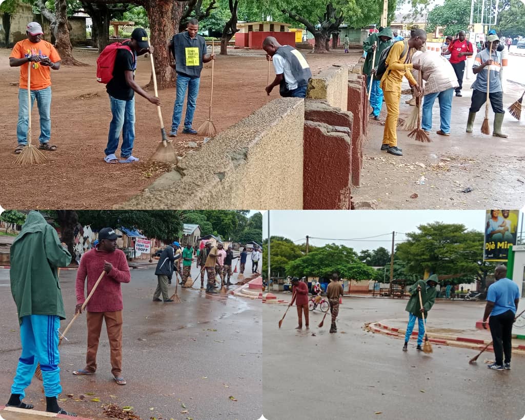 Djougou/ Journée mensuelle de salubrité : principales artères et places publiques prises d’assaut par le personnel de la mairie, les militaires du 8ème Bataillon inter armés, les membres de Amnesty International section de Djougou et quelques bonnes volontés