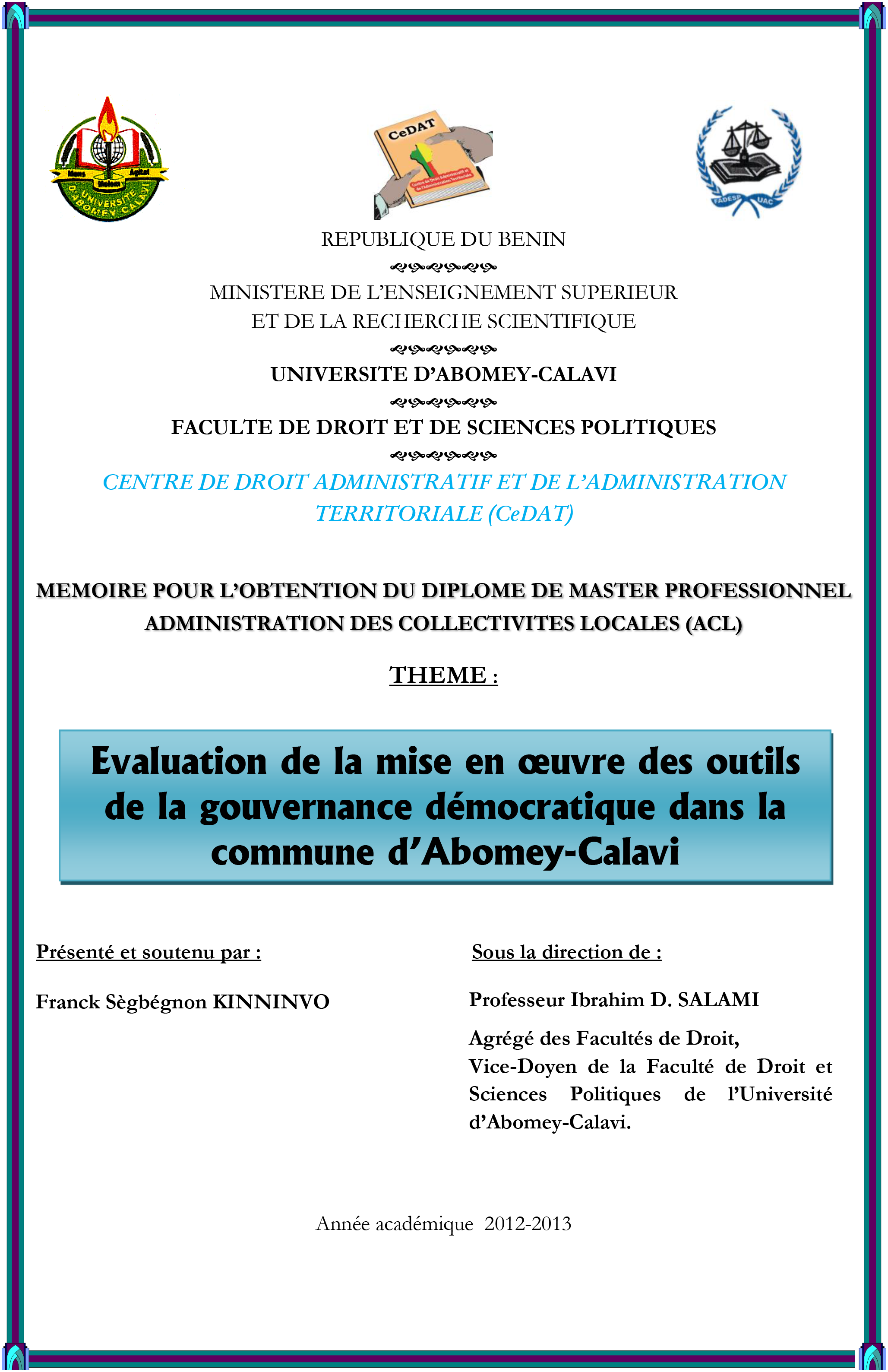 Memoire CéDAT 2013 Evaluation de la mise en œuvre des outils de la gouvernance démocratique dans la commune d’Abomey-Calavi
