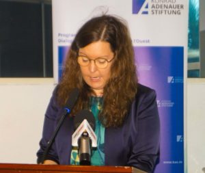 A l’ouverture de cette deuxième édition du forum économique, Dr Stefanie BRINKEL, Représentante Résidente de la KAS après avoir salué les diverses autorités présentes, a manifesté son immense joie de recevoir cette jeunesse entreprenante qui fait la fierté du Bénin et qui de leurs efforts participent à la stabilité du pays. Pour elle, « la croissance économique est un élément fondamental de la paix, car elle génère des revenus qui bien répartis entretiennent un niveau de vie convenable, favorable à l’émancipation politique et sociale ». Le développement économique et social d’une région dépend en grande partie de ses compétences locales. Lorsque les individus disposent des compétences nécessaires pour occuper des emplois locaux, ils contribuent à la croissance économique, à la création d’entreprises et à l’amélioration du niveau de vie dans leur communauté. Le développement par les compétences locales est donc essentiel pour assurer une prospérité durable à tous les niveaux. Ainsi à travers ce forum économique, la KAS, comme le dit Dr BRINKEL, se positionne comme « bâtisseur de ponts entre les Hommes et créateur de cadres de discussions et de concertation » car pour elle, toutes les vies comptent pour la croissance économique d’un pays.