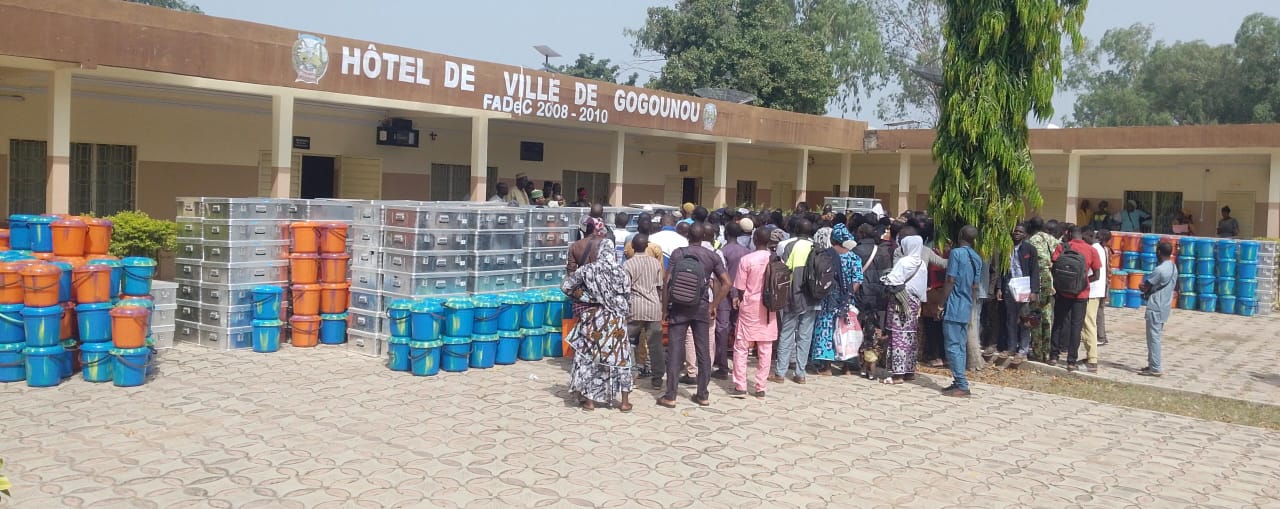 La cérémonie de remise officielle des kits de travail aux ASCQ et RC de la commune de Gogounou s’est tenue, le lundi matin, à l’esplanade de la mairie de Gogounou. C’est le Maire Seydou Bary TIDJANI en personne, assisté du Médecin Chef de la commune Dr François ACAKPO et du Secrétaire Exécutif de la mairie, Eric MONGBO qui a présidé cette cérémonie.
