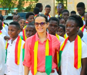 « Je tiens vraiment à féliciter M. Béranger Yakassou et Mlle Caroline Sogbali parce qu’ils sont en collaboration avec l’ambassade et je sens cette volonté de vouloir développer davantage cette collaboration, surtout à l’image de El Sistema qui est un système national de chœur d’enfants et de jeunes du Venezuela. Ils ont la volonté de transférer le même système ici au Bénin. Je vois déjà que le travail a commencé et je suis vraiment fière de la prestation des enfants. Je souhaite, comme c’est l’ambition dans El Sistema, que tous les enfants du monde entier, spécialement les enfants du Bénin, puissent avoir accès aux instruments ( violon, trompette, piano….) et que le Chœur d’Enfants et de jeunes puisse grandir du Sud jusqu’au Nord, en passant par l’Est et à l’Ouest du Bénin. Toutes mes félicitations aux jeunes encadreurs des enfants et je leur souhaite de la persévérance et qu’ils aient beaucoup de sponsors afin que le Chœur d’Enfants et de jeunes et le Chœur de Félix puissent vraiment grandir. »