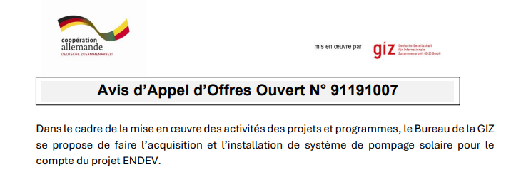 se propose de faire l’acquisition et l’installation de système de pompage solaire pour le