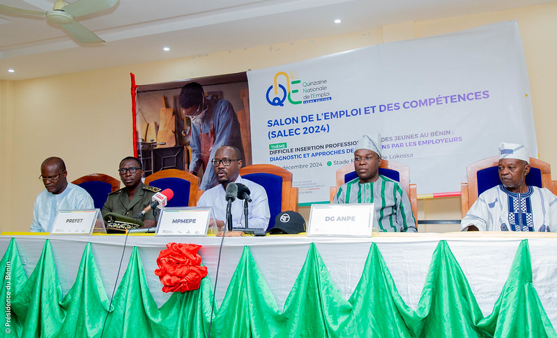 Placé sous le thème : « Difficile insertion professionnelle des jeunes au Bénin : Diagnostic et approches de solutions par les employeurs » la commune de Lokossa a accueilli le lancement de la 6ème édition du Salon de l’Emploi et des Compétences (SALEC), le vendredi 13 décembre 2024 au stade municipal. Le maire de Lokossa, le ministre des Petites et Moyennes Entreprises et de la Promotion de l’Emploi, le Directeur Général de l’Agence Nationale pour l’Emploi, l’Honorable Dakpè SOSSOU ainsi que les membres de la Conférence Administrative Départementale du Mono étaient présents.