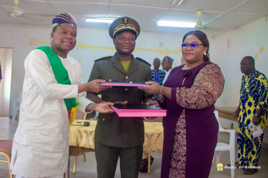 Mise en œuvre des réformes dans l’administration communale à la mairie de Bohicon Le Maire Rufino d’ALMEIDA et le Préfet Firmin Aimé KOUTON installent la Secrétaire Exécutive, Sessi Ginette APITHY