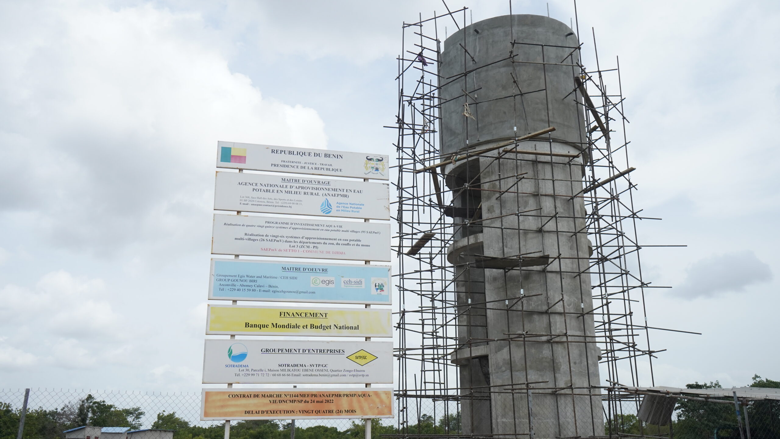 Les chantiers de Setto 1, Setto 2, Setto 3 et de Gobaix occupent une place centrale dans le dispositif en cours de déploiement. Sur le site de Sétto 3, le conducteur des travaux, Jules Ahouansou, a indiqué qu’il s’agit d’un château d’eau de 200 m³, sur une hauteur de 18 mètres sous cuve et destiné à alimenter 14 bornes fontaines.