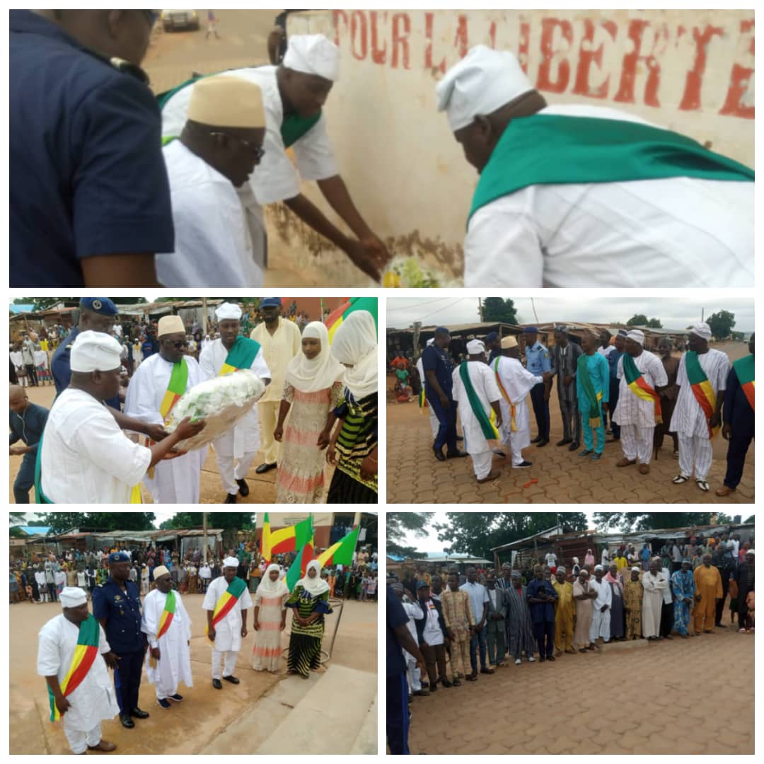 A l’instar des autres Communes du Bénin, Pèrèrè n’est pas restée en marge de la célébration du 64 ème anniversaire de notre accession à la souveraineté nationale et internationale. Très tôt, les populations ont pris d’assaut la place du monument aux morts. A 09 heures le Maire et sa délégation ont rejoint les populations à ce lieu. Après la revue de troupe et la montée des couleurs nationales suivies de l’hymne nationale, les gerbes de fleurs ont été déposées au monument aux morts suivi de recueillement. Après quoi le Maire a prononcé son discours à l’endroit de toutes les forces vives de la commune de Pèrèrè.