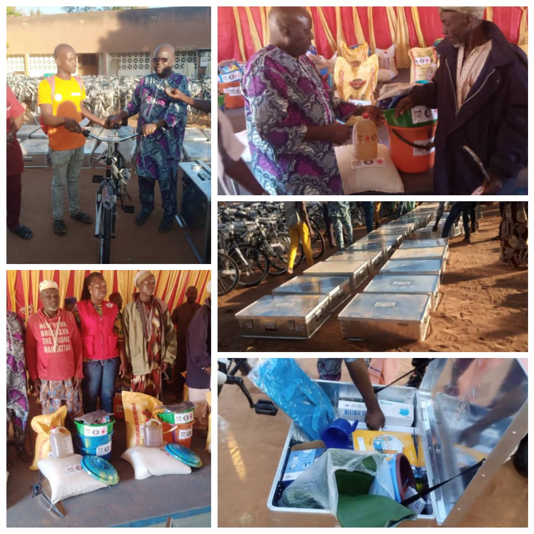 Le projet de don de kits alimentaires et non alimentaires financé par la CEDEAO à travers le Gouvernement du Bénin est rentré dans sa phase active, le samedi 16 novembre 2024. Devant le maire de Pèrèrè et ses 2 adjoints, la Croix-Rouge a procédé à la remise de 25 kits alimentaires et non alimentaires aux 25 bénéficiaires venus de tous les arrondissements de Pèrèrè,. En effet, lesdits kits sont distribués aux victimes des inondations de 2022 et 2023 dans la commune qui ont été retenues selon des critères clairs par la Croix Rouge. On y trouve des sacs de 20 kg de riz et de maïs, de savons, de plastiques, de tee-shirts de pâtes dentifrices etc. Il faut signaler que les jours qui suivront, il leur sera fait des Momo Cash de l’ordre de 44 000 F chacun.