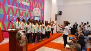 Dans le cadre de la mise en œuvre du projet ‘’Musique pour tous’’ (Música para Todos) initié par l’ambassade de la république bolivarienne du Venezuela au Bénin, une formation à la direction chorale et de chant choral été organisée pendant deux semaines à l’endroit des chefs de chœurs et des choristes de Cotonou. Conduit de main de maître par la directrice du chœur national ‘’Simon Bolivar’’ de la République bolivarienne du Venezuela, Lourdes Sánchez. Cette formation qui a réuni plusieurs maîtres de chœur et de jeunes talentueux choristes s’est soldée par une soirée de restitution ce vendredi 13 septembre au Ministère du Tourisme et de la Culture et des Arts en présence de plusieurs autorités du ministère, de l’ambassadeur du Venezuela près le Bénin et de plusieurs autorités du corps diplomatique.