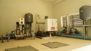 Le site intègre également des installations de climatisation, de ventilation et de traitement de l’air dimensionnées pour un environnement de laboratoire. Deux groupes d’eau glacée, des centrales de traitement et de purification de l’air, ainsi que des réseaux aérauliques spécialisés concourent au maintien de conditions stables, avec une priorité donnée aux espaces analytiques du rez-de-chaussée en cas d’incident. Une telle architecture traduit une compréhension fine des exigences de maîtrise environnementale propres aux analyses de microbiologie et de physico-chimie.