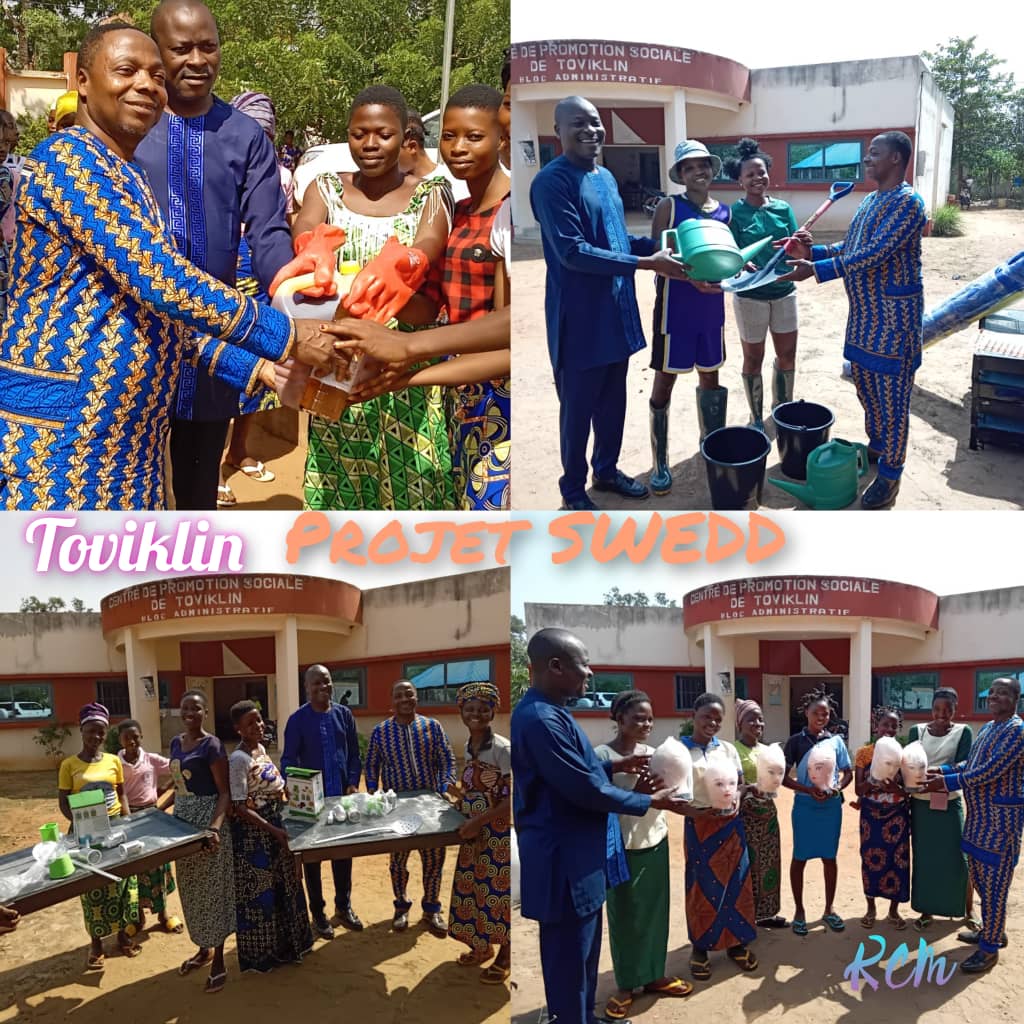 Le Projet d’autonomisation des femmes et du dividende démographique au Sahel (SWEDD) a fait bénéficier d’une formation professionnelle, 1400 jeunes filles et femmes de la commune de Toviklin, ceci dans le cadre du sous-projet « Autonomisation des filles et des femmes ». Au terme de cette formation, les bénéficiaires ont reçu des matériels nécessaires au démarrage de leurs activités. C’est le maire de Toviklin, Rigobert TOZO qui a procédé à la remise officielle des équipements au CPS de Toviklin en présence des autorités locales, du DE de l’ONG GRASID (qui pilote le projet), du responsable GUPS, et des bénéficiaires.